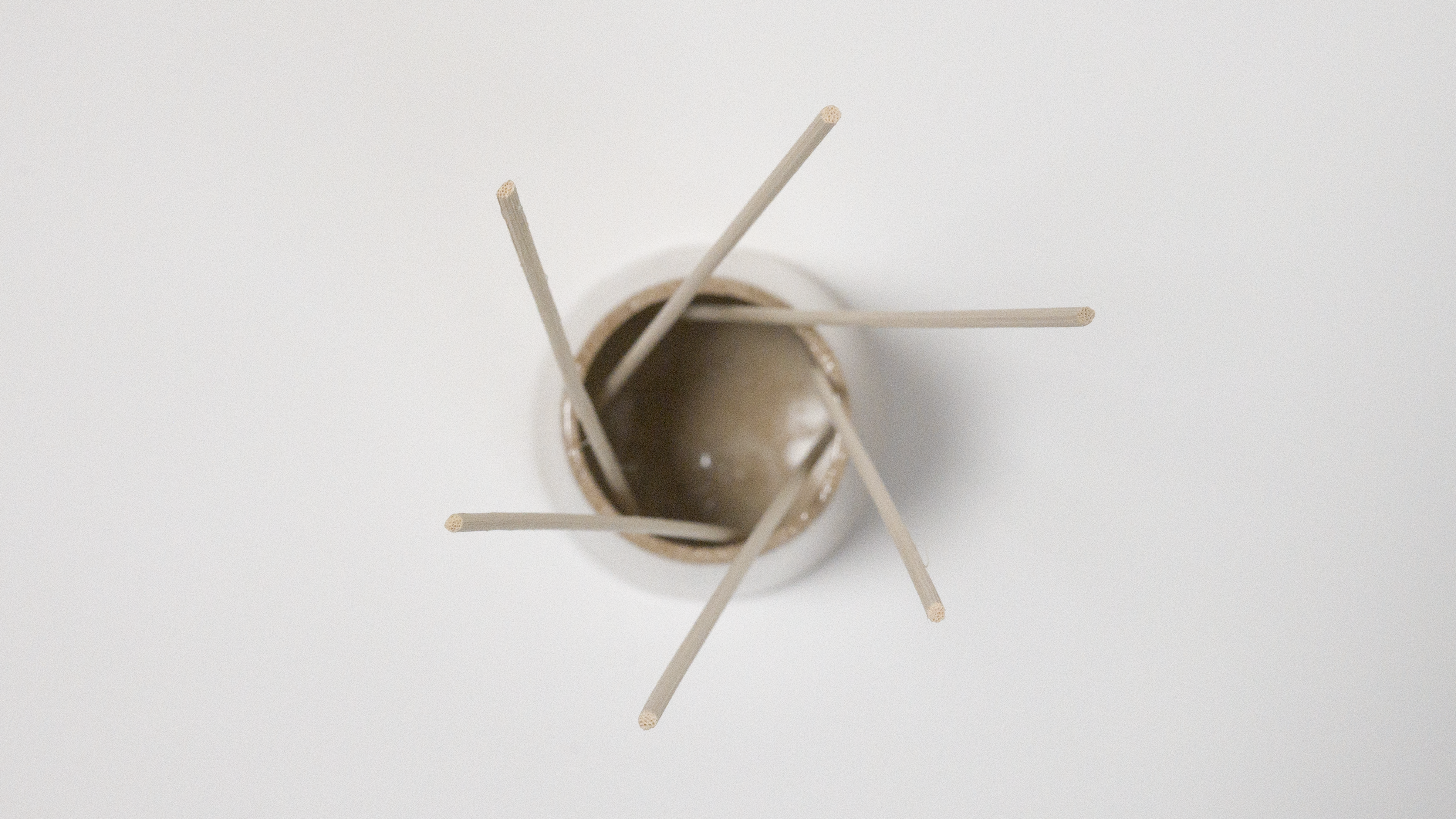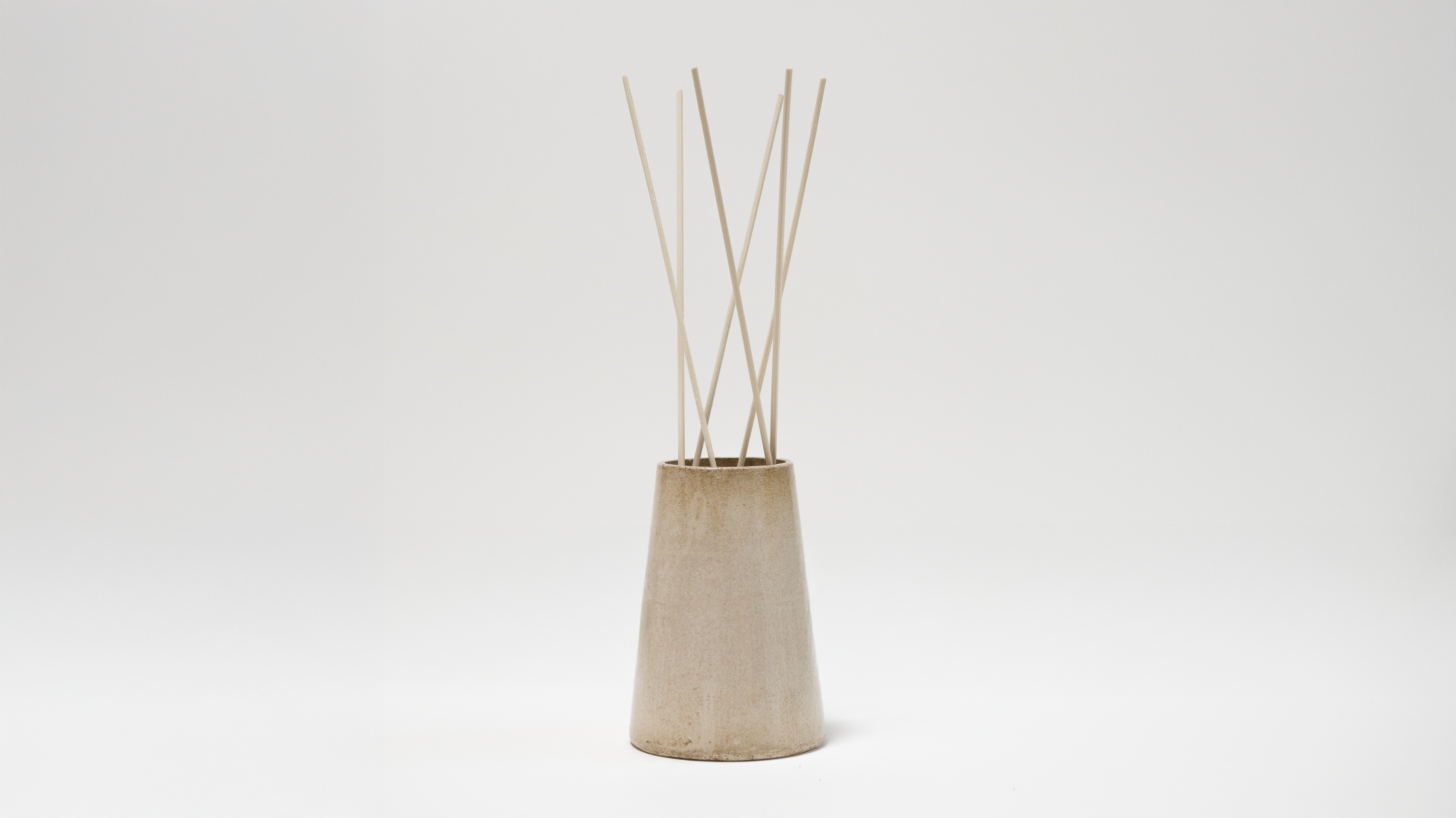 Imagining the way fragrance disperses from rattan sticks, this porcelain diffuser container was designed with consideration for mass production.